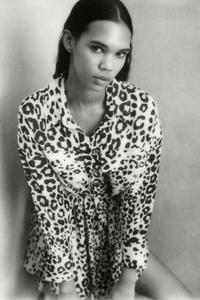 PRINTED LINEN BLEND DRESS. Belt detail in the same fabric. Zara Animal Print Leopard Midi Dress Long Sleeves Size XS.