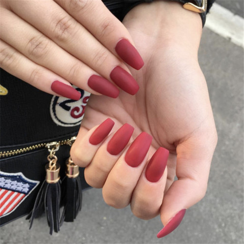 Buy Online Matte Red Fake Nails Short Coffin Shape Plastics Impress Press On Nails False With Glue Sticker Artificial Ballerina Nepnagels Alitools
