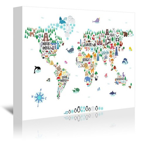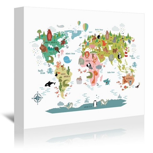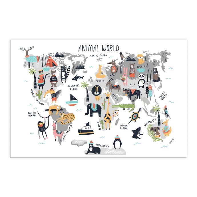 Animal World Map 24x36 Canvas Bed Bath Beyond