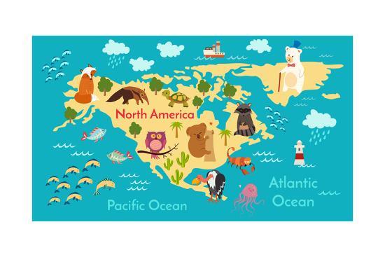 Cartoon Animal World Map For Children With Animals By Designer Things
