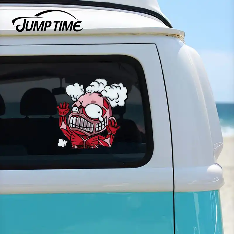 Jump Time 13cm X12 6cm Attack On Titan Funny Hitting Glass Sticker Graphics Car Stickers Vinyl Diy Bumper Waterproof Fine Decals Car Stickers Aliexpress