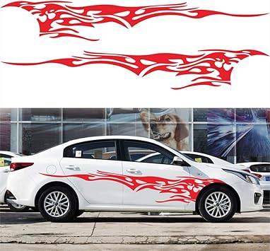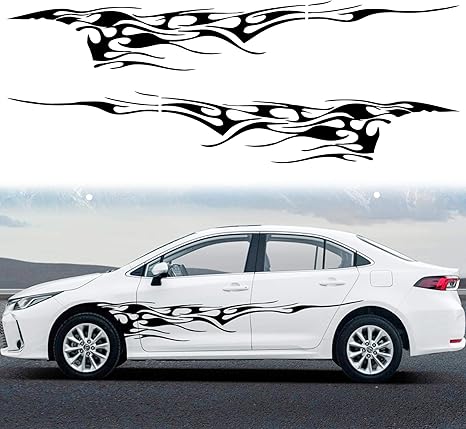 Amazon Com Tomall 2pcs 102 7 Flame Graphics Car Body Side Sticker Flame Racing Sports Stripe Decal For Car Universal Vinyl Self Adhesive Decal Decoration Accessories For Truck Suv Off Road Vehicles Black Automotive