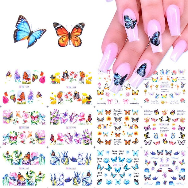 Butterfly Nail Art Stickers Water Transfer Nail Decals Flowers Butterfly Designs For Nails Diy Walmart Com Walmart Com