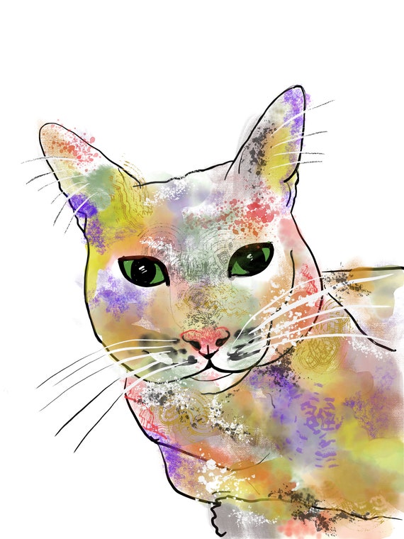 Animal Art Print Prints Digital Print Wall Art Print Cat Art Etsy