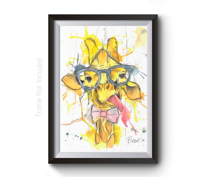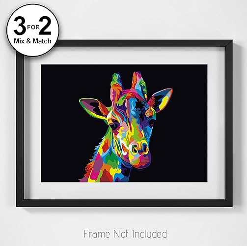 Cute Wildlife Artwork In Giclee Quality Giraffe Wall Art Print Abstract Colourful Animal Art Prints