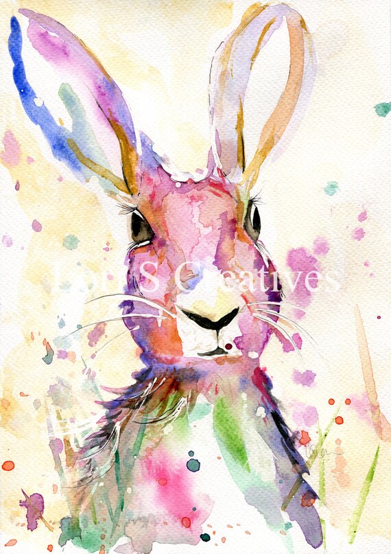 Hare Watercolour Colourful Art Print Colourful Animal Etsy