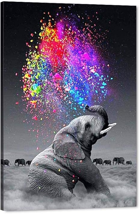Amazon Com Cute Animals Artwork Abstract Colourful Elephant Painting Large Contemporary Home Decor On Canvas Art Print Wall Art Picture For Living Room Kids Bedroom Wall Decor Framed Ready To Hang 12 Wx18 H Wall Art