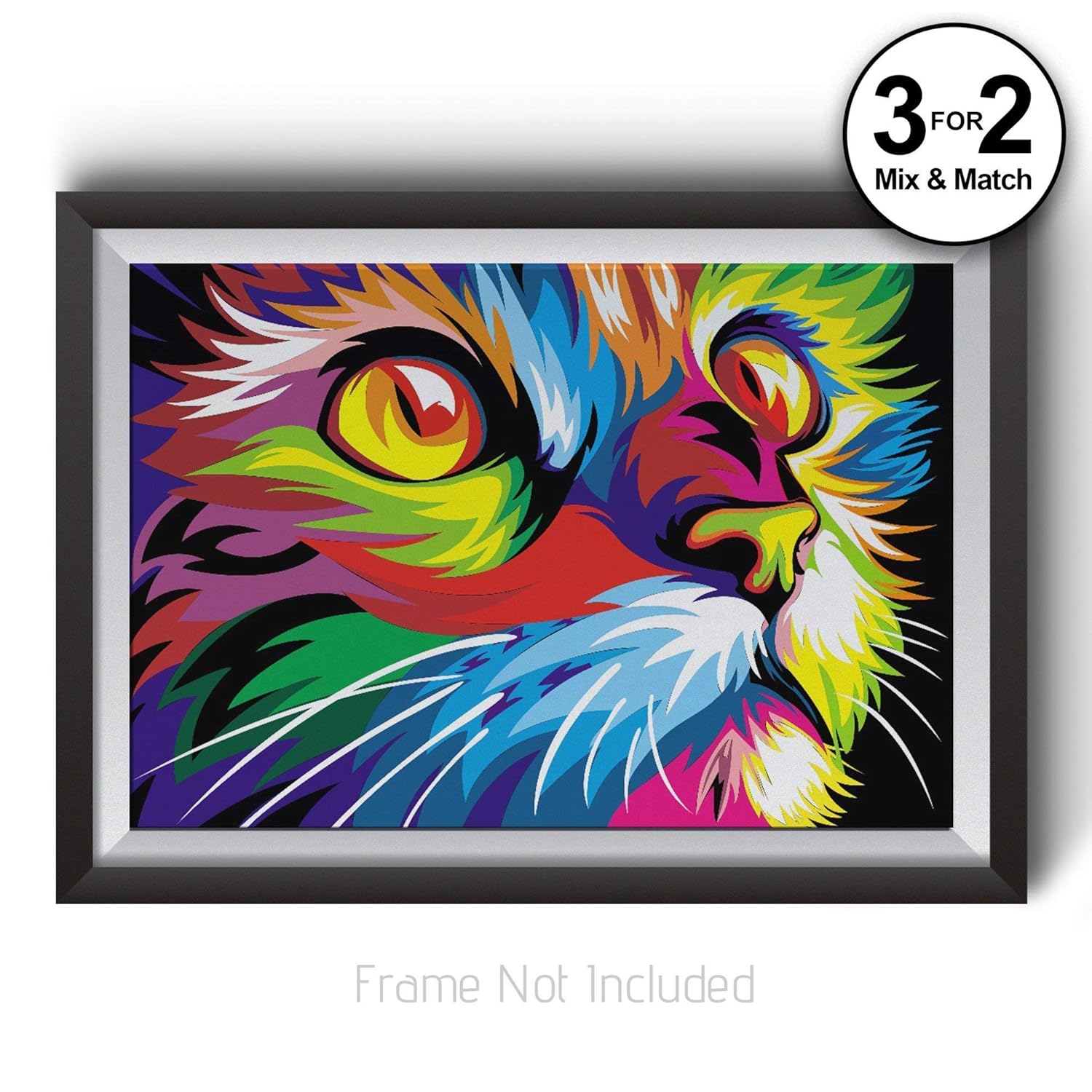 Abstract Cat Wall Art Print Colourful Animal Art Prints Pet Lover Poster In Giclee Quality Erginyuksel Com Tr