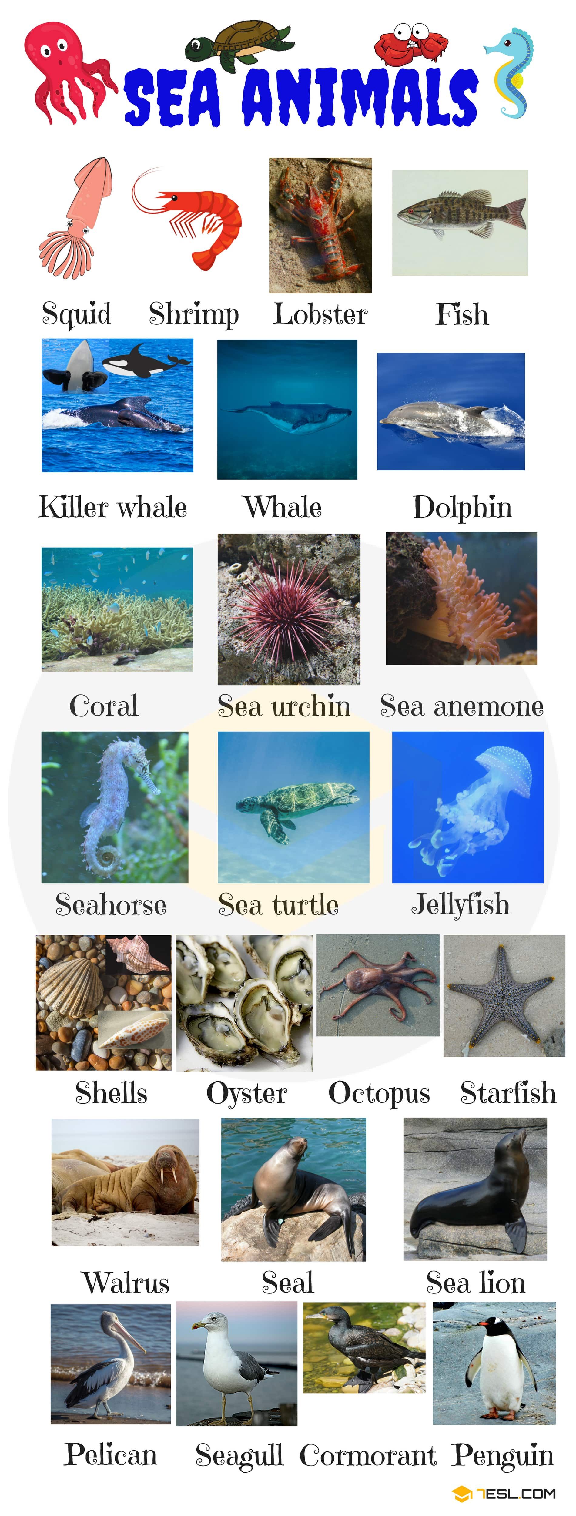 Sea Animals List Of 30 Popular Sea Animals With Esl Pictures English Study Online